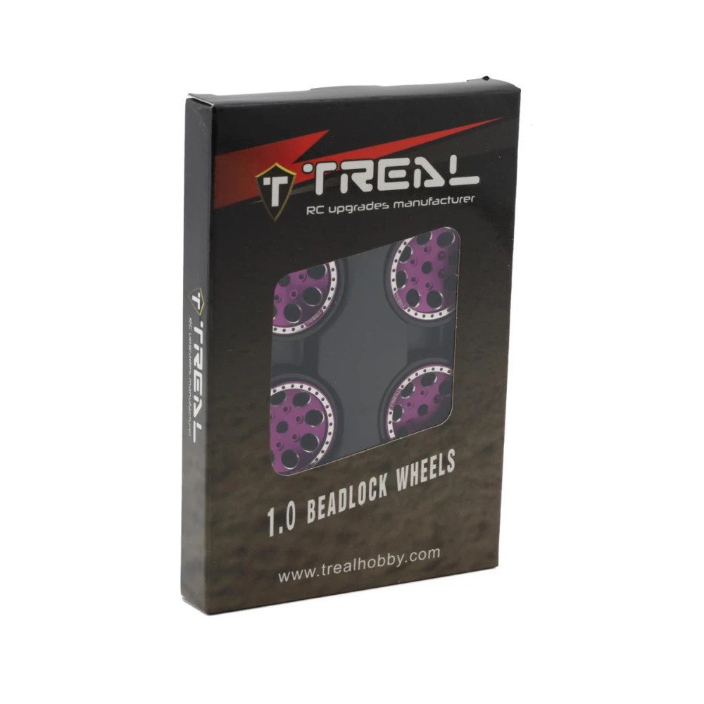 Treal Hobby 1.0″ 8-Hole Beadlock Wheels. Constructed from top quality CNC machined aluminum with interchangeable brass center rings, These optional beadlock rims are intended for 1/24 and 1/18 Scale rock crawlers to enhance scale realism, style, durability, and performance! Features a scale 8-hole rim with an easy to mount beadlock design. In addition, multiple colors are available to choose from allowing you to customize the look and style of your rig all while adding 88g of total unsprung weight down low to improve the lower center of gravity for enhanced and more stable crawling performance!